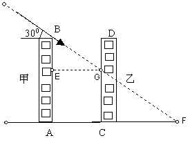 下图为住宅区内的两幢楼,它们的高,现需了解甲楼对乙楼的采光的影响情况。当太阳光与水平线的夹角为30°时。试求: