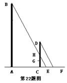22、如图,易算出AE=8米,由AC=7米,可得CE=1米,