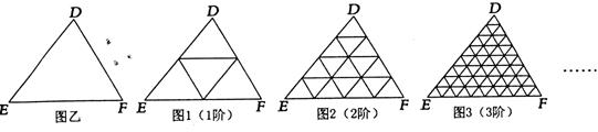 (2)一般地,“任意三角形都是自相似图形”,只要顺次连结三角形各边中点,则可将原三角形分割为四个都与它自己相似的小三角形.我们把△DEF(图乙)第一次顺次连结各边中点所进行的分割,称为1阶分割(如图1);把1阶分割得出的4个三角形再分别顺次连结它的各边中点所进行的分割,称为2阶分割(如图2)…依次规则操作下去.n阶分割后得到的每一个小三角形都是全等三角形(n为正整数),设此时小三角形的面积为SN.