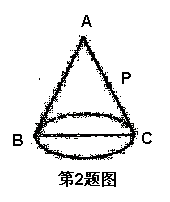 11. 如图,有一圆锥形粮堆,其主视图是边长为6m的正三角形ABC,母线AC的中点P处有一老鼠正在偷吃粮食,小猫从B处沿圆锥表面去偷袭老鼠,则小猫经过的最短路程是 m。(结果不取近似数)