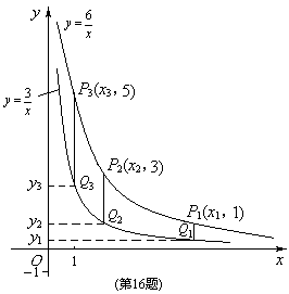 在第一象限内的图象如图所示, 点P1,P2,P3,…,P2 005在反比例函数