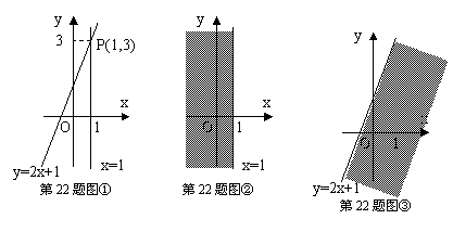 在直角坐标系中,x≤1表示一个平面区域,即直线x=1以及它左侧的部分,如图②;y≤2x+1也表示一个平面区域,即直线y=2x+1以及它下方的部分,如图③。