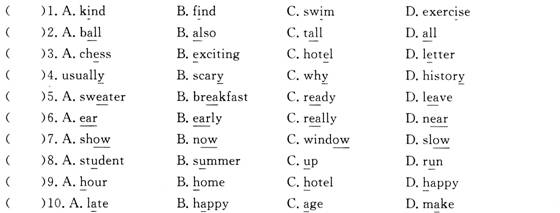 下面单词中都有一个划线部分与其他三个读音不同的。将其序号填入前面的括号内。