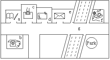 Ⅰ.a library b pay phone c supermarket d bank e post office f video arcade g bridge
