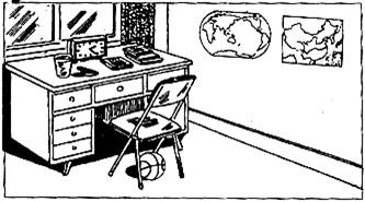 My name is Jeff. I’m English. But now I live in(居住在) China. I am a student(学生). This is my classroom. Fifteen(十五) small(小) desks and thirty(三十) chairs are in the classroom . They are for my classmates(同班同学) and me . A big(大) desk is in the classroom , too. It’s for my teacher. A clock is on the back(后面的) wall of the classroom. Next to the clock is a map. It’s map of China.