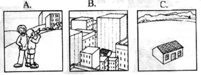 ( ) 2. There is a ______ in the park. A. map B. picture C. river