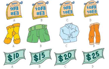 I. 听对话,从每小题4幅图画中选出与对话内容相符的一幅。(5分)