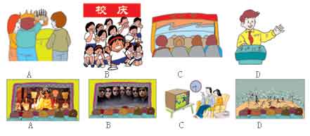 I. 听对话,从每小题4幅图画中选出与对话内容相符的一幅。(5分)