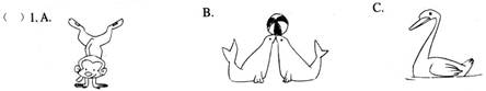 ( ) 4. A. It’s a pear B. It’s yellow C. P-E-A-R, pear.