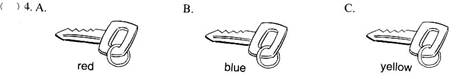 ( ) 3. A. It’s Bob. B. It’s a blue key C. It’s green