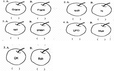 ( ) 5. A. It’s blue and red. B. Hi, Frank. C. OK, C-O-L-O-R, color.