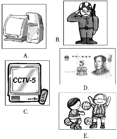 II. 听录音,根据你听到的内容选择适当的图画。(5分)