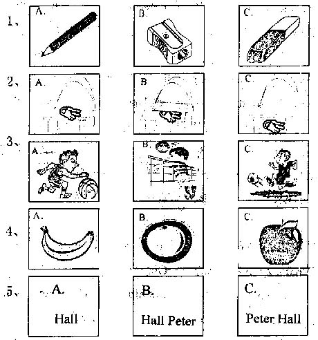 I.听句子,选择相应的图画。(5分)