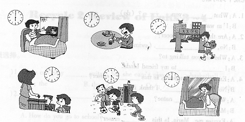 IV. 1.get up 2. do one’s homework 3. eat breakfast 4. go home 5. at half past eleven(eleven thirty) 6. 弹吉他 7. 上学 8. 上午 9.谈谈你的学校 10.淋浴