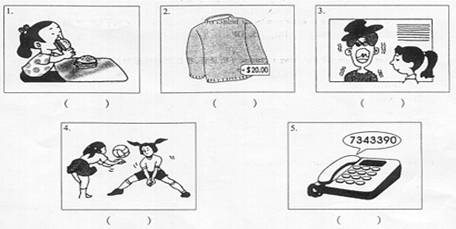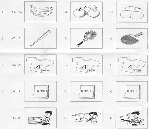 I. 听录音,选择正确的图画,每小题念一遍。(5分)