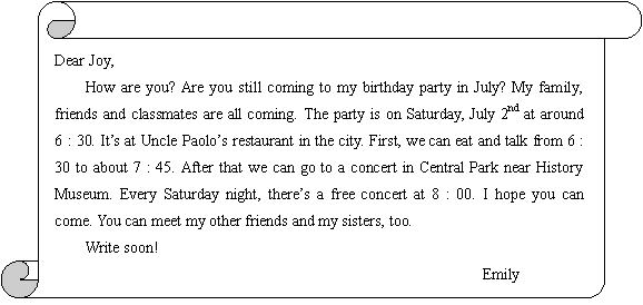 A. Joy’s birthday party. B. Emily’s birthday party.