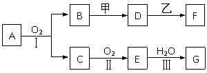 ⑴若用两根玻璃棒分别蘸取A、G的浓溶液并使它们接近,有大量白烟生成;甲为一种淡黄色固体,D、F的溶液均呈碱性。则
