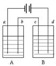 17.如图所示的A、B两个电解池中的电极均为铂,