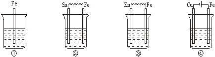 4.下图各容器中盛有海水,铁在其中被腐蚀时由快到慢的顺序是