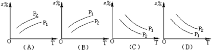 6.如图所示,反应:X(气)+3Y(气) 2Z(气)+Q(Q>0),在不同温度、不同压强(p1>p2)下,达到平衡时,混合气体中Z的百分含量随温度变化的曲线应为 ( )