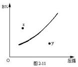 x点时的压强小于y点时的压强,根据压强对化学反应速率的影响,可知x点时的反应速率小于y点时的反应速率。故答案选B。